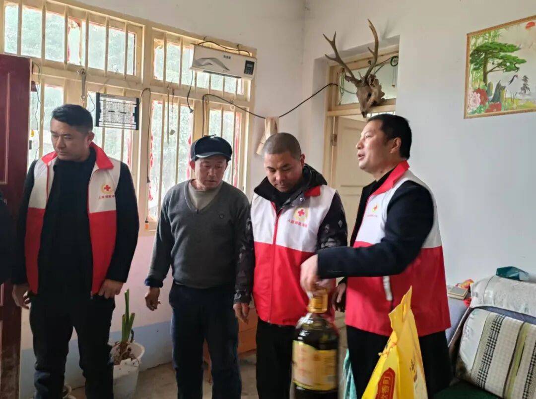 1月16日,毕节市红十字会联合七星关区红十字会深入杨家湾镇开展走访慰问活动,为当地困难群众送去大米、食用油等生活物资。